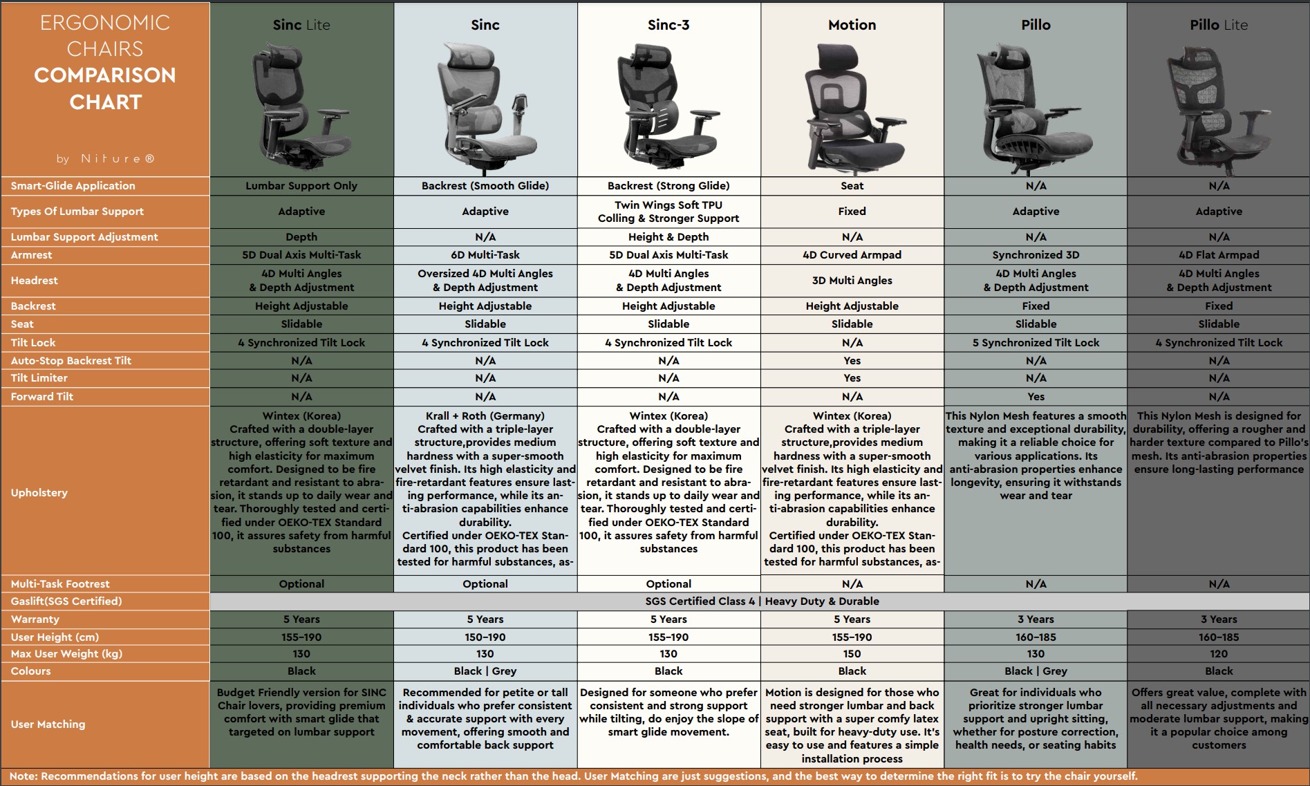 Please visit the showroom to select a right chair for yourself, I strongly encourage you to visit the showroom to test all of the models. although the location is a bit far for me to travel from KL but it is a worth to spent the time to get a good chair at a reasonable price.